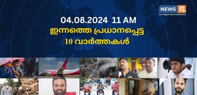 04.08.2024. 11 AM . ഇന്നത്തെ പ്രധാനപ്പെട്ട 10 വാർത്തകൾ