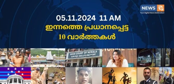 05.11.2024. 11 AM . ഇന്നത്തെ പ്രധാനപ്പെട്ട 10 വാർത്തകൾ