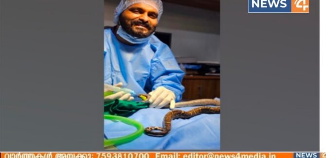 അപൂർവ്വ ശസ്ത്രക്രിയയിലൂടെ പെരുമ്പാമ്പുകളുടെ ഇനത്തിൽ പെടുന്ന വിദേശ അരുമ മൃഗങ്ങളിൽപെട്ട റെഡ് റെയില് ബോവയുടെ നാസദ്വാരത്തിൽ നിന്നും അർബുദ മുഴ നീക്കം ചെയ്തു.A cancerous tumor was removed from the nostrils of a red rail boa, an exotic python, in a rare surgical procedure എറണാകുളത്ത് പക്ഷികളുടയും എക്സോട്ടിക് അരുമ മൃഗങ്ങൾക്കയുള്ള ബേർഡിനെക്സ് ഏവിയൻ ആന്റ് എക്സോട്ടിക് പെറ്റ് ഹോസ്പിറ്റലിലെ ഡോ ടിട്ടു എബ്രഹാമും സംഘവും അപൂർവ്വ ശസ്ത്രക്രിയ നടത്തിയത്. … Continue reading കൊച്ചിയിലെ ആശുപത്രിയിൽ അപൂർവ്വ ശസ്ത്രക്രിയ; അമേരിക്കൻ പാമ്പിൻ്റെ മൂക്കിൽ നിന്നും അർബുദ മുഴ നീക്കം ചെയ്തു