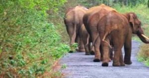 ഇടുക്കിയിൽ റോഡിൽ സഞ്ചാരികളെ വളഞ്ഞ് കാട്ടാനക്കൂട്ടം; രക്ഷപെട്ടത് തലനാരിഴക്ക്