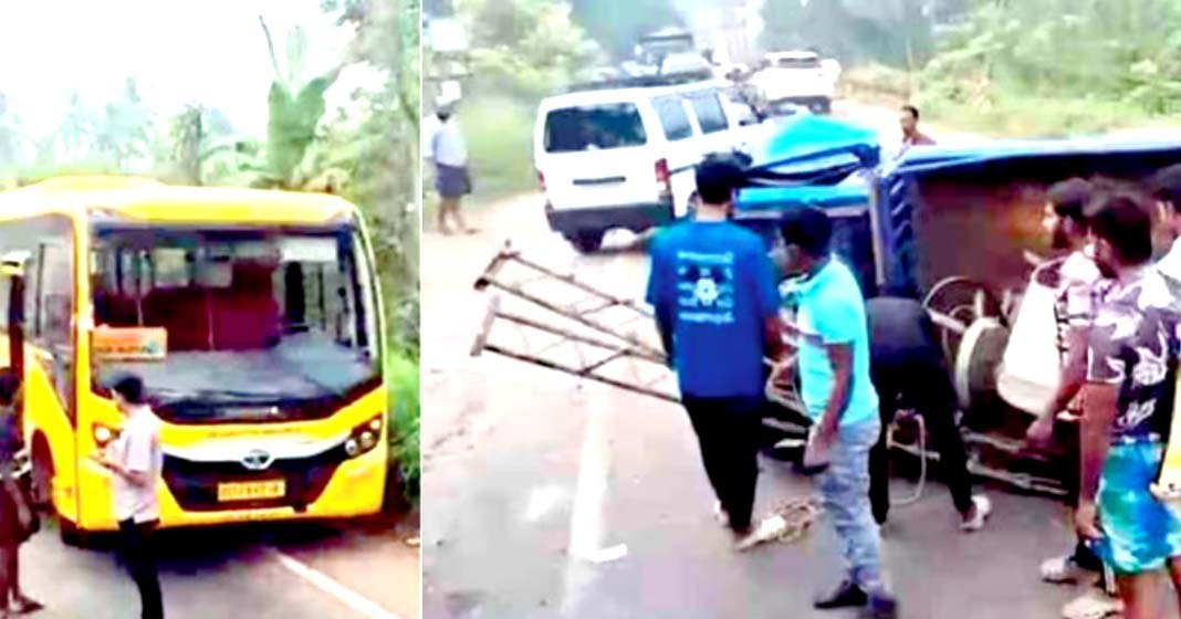മലപ്പുറം ദേശീയപാതയിൽ സ്കൂൾ ബസും പിക്കപ്പ് ലോറിയും കൂട്ടിയിടിച്ച് അപകടം; കുട്ടികൾ അത്ഭുതകരമായി രക്ഷപ്പെട്ടു; 6 പേർക്ക് പരിക്ക്