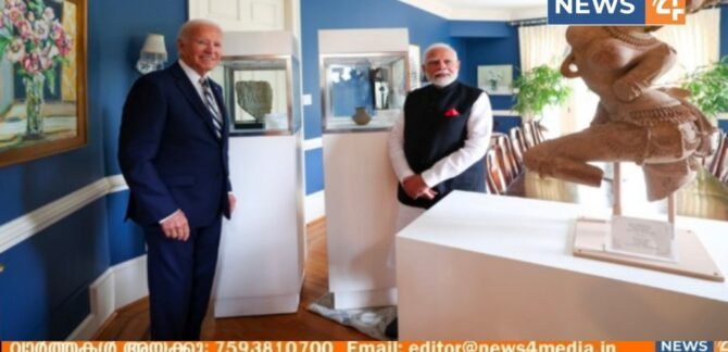 ന്യൂഡൽഹി: പ്രധാനമന്ത്രി നരേന്ദ്ര മോദിയുടെ യുഎസ് സന്ദർശന വേളയിൽ 297 പുരാവസ്തുക്കൾ അവർ ഭാരതത്തിന് തിരികെ നൽകി.During Prime Minister Narendra Modi’s US visit, they returned 297 artifacts to India ഇതോടെ 2014 മുതൽ ഇന്ത്യ കണ്ടെടുത്ത മൊത്തം പുരാവസ്തുക്കളുടെ എണ്ണം 640 ആയി. 2004 നും 2013 നും ഇടയിൽ ഒരു പുരാവസ്തു മാത്രമേ ഇന്ത്യയിലേക്ക് തിരികെ എത്തിയിട്ടുള്ളൂ. ഇതോടെ അമേരിക്കയിൽ നിന്ന് ഇന്ത്യയിലേക്ക് തിരിച്ചെത്തിയ പുരാവസ്തുക്കളുടെ എണ്ണം 578 ആയി. … Continue reading നഷ്ടപ്പെട്ടെന്ന് കരുതിയ 297 പുരാവസ്തുക്കൾ കൂടി ഇന്ത്യയിലേക്ക്; ‘സാംസ്കാരിക സ്വത്തവകാശ ഉടമ്പടി’യിൽ സുപ്രധാന ചുവടുവെപ്പ്