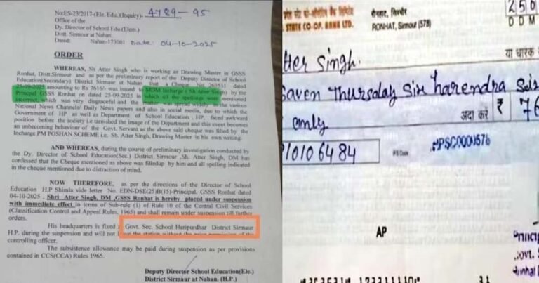 അക്ഷരത്തെറ്റുകൾ നിറഞ്ഞ ചെക്ക്; പിന്നാലെ തെറ്റുകൾ നിറഞ്ഞ സസ്പെൻഷൻ ഓർഡർ ഷിംല∙ ഹിമാചൽ പ്രദേശിൽ സ്കൂൾ അധ്യാപകൻ എഴുതിയ ബാങ്ക് ചെക്ക് സമൂഹമാധ്യമങ്ങളിൽ വൈറലായതോടെ വിദ്യാഭ്യാസ വകുപ്പ് ഉടൻ നടപടി സ്വീകരിച്ചു. ചെക്കിലെ അക്ഷരത്തെറ്റുകൾ കാരണം അധ്യാപകൻ സസ്പെൻഷനിൽ ആകുകയായിരുന്നു. എന്നാൽ, സസ്പെൻഷൻ ഉത്തരവിൽ തന്നെയും അക്ഷരത്തെറ്റുകൾ നിറഞ്ഞതോടെ സംഭവം കൂടുതൽ പരിഹാസത്തിന് വഴിവെച്ചു. ഹിമാചലിലെ സിർമൗർ ജില്ലയിലെ റോൺഹട്ടിലുള്ള ഗവൺമെന്റ് സീനിയർ സെക്കൻഡറി സ്കൂളിലെ ഡ്രോയിങ് അധ്യാപകനായ അട്ടർ സിങ്ങിനെയാണ് നടപടി നേരിട്ടത്. അധ്യാപകൻ എഴുതി … Continue reading അക്ഷരത്തെറ്റുകൾ നിറഞ്ഞ ചെക്ക്; പിന്നാലെ തെറ്റുകൾ നിറഞ്ഞ സസ്പെൻഷൻ ഓർഡർ