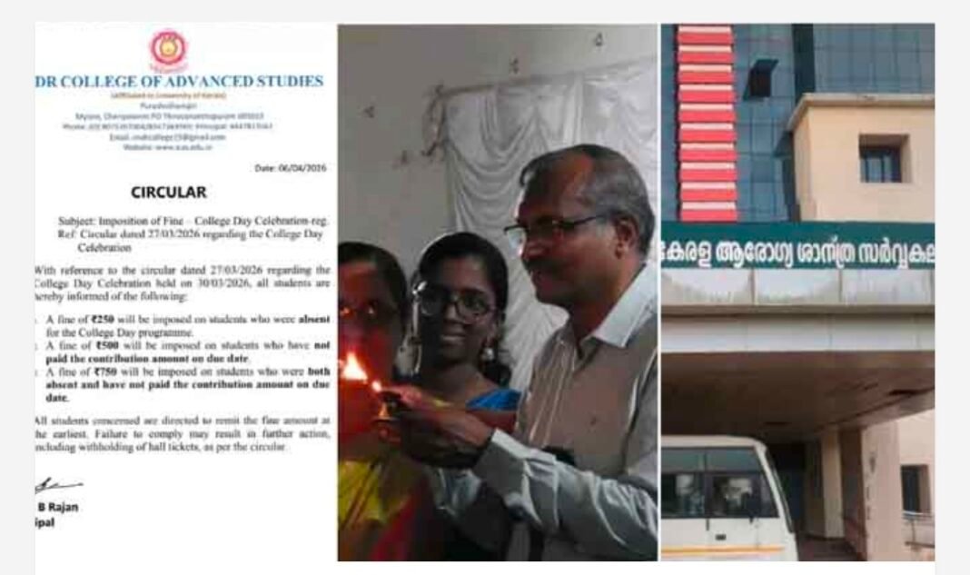 A controversy has erupted after IMDR College in Kerala issued a circular imposing fines on students who did not attend or contribute to College Day. The Kerala University of Health Sciences has sought an explanation from the college, stating that forcing participation and imposing penalties is unacceptable. The university has directed the college to withdraw the circular immediately.