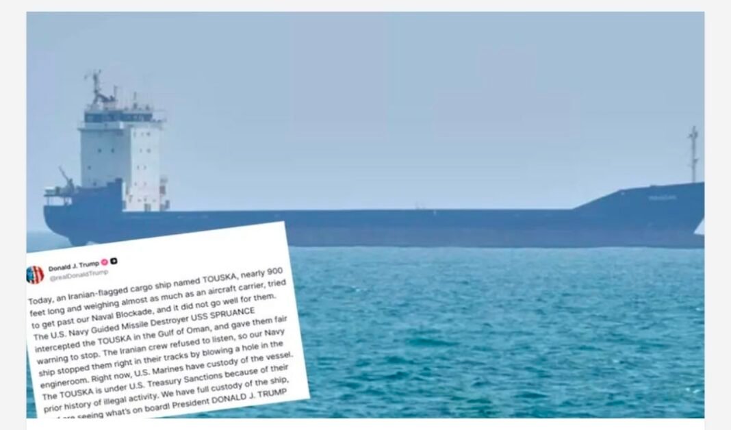 ഹോർമുസ് കടലിടുക്കിൽ യുഎസ് സൈനിക നടപടി; ഇറാനിയൻ ചരക്കുകപ്പൽ അമേരിക്ക പിടിച്ചെടുത്തു