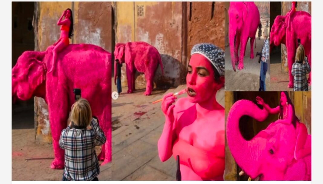 മോഡലായ യശസ്വിയെയും പിങ്ക് നിറം പൂശിയ ആനയെയും ഉൾപ്പെടുത്തി കൊട്ടാര പശ്ചാത്തലത്തിൽ ചിത്രങ്ങൾ പകർത്തി. സോഷ്യൽ മീഡിയയിൽ ചിത്രങ്ങളും വീഡിയോകളും പ്രചരിച്ചതോടെ മൃഗങ്ങളോടുള്ള ക്രൂരതയാണെന്നാരോപിച്ച് ശക്തമായ പ്രതിഷേധമാണ് ഉയർന്നത്.