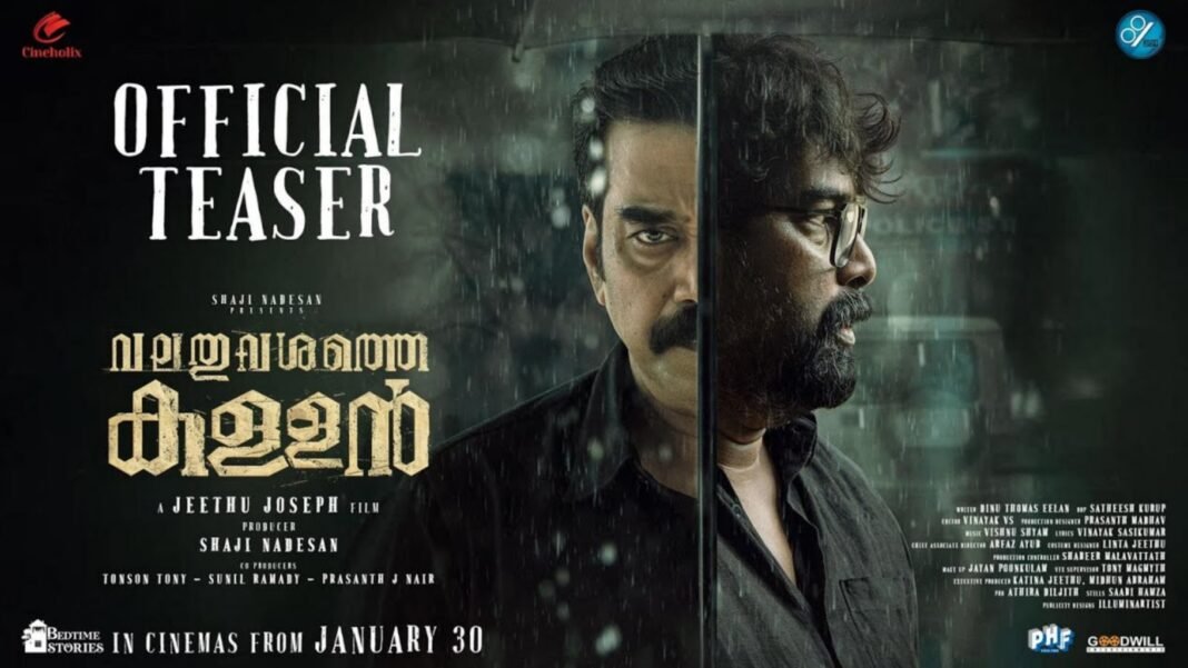 Director Jeethu Joseph’s upcoming investigation thriller film Valathuvashathe Kallan has released its teaser, featuring Biju Menon and Joju George in lead roles. Slated for a January 30 theatrical release, the film promises a mysterious narrative and arrives ahead of the much-anticipated Drishyam 3.