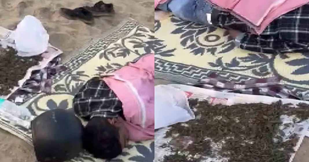 കഞ്ചാവ് ഉണക്കാനിട്ടശേഷം ബീച്ചിൽ പായ വിരിച്ച് പുതച്ച് ഉറങ്ങി; യുവാവ് പിടിയിൽ