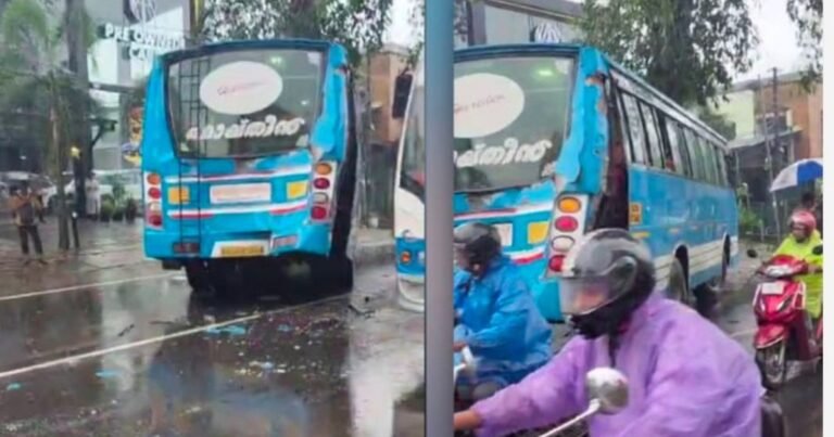 എതിരെ വന്ന ബസ് മറ്റൊരു ബസിന്റെ സൈഡിൽ തട്ടി, നിയന്ത്രണം വിട്ട് മരത്തിലിടിച്ചു; 20 പേർക്ക് പരിക്ക്