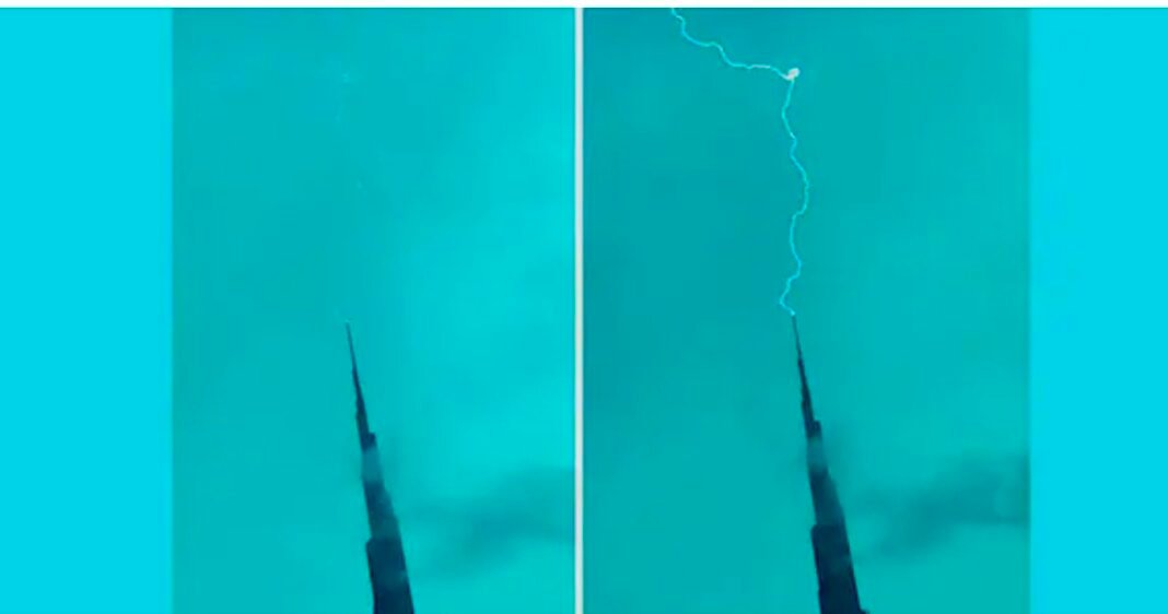 യുഎഇയിൽ ‘അൽ ബഷായർ’ ന്യൂനമർദ്ദം ശക്തമായതിനെ തുടർന്നുണ്ടായ കനത്ത മഴയ്ക്കിടെയാണ് വ്യാഴാഴ്ച ബുർജ് ഖലീഫയ്ക്ക് മുകളിൽ അതിശക്തമായ മിന്നൽ പതിച്ചത്.