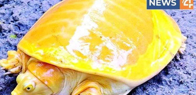 അത്യപൂർവം; പാടത്തുനിന്ന് വീട്ടിലേക്കു കയറി വന്നത് സ്വർണ ആമ; കേരളത്തിൽ ആദ്യം