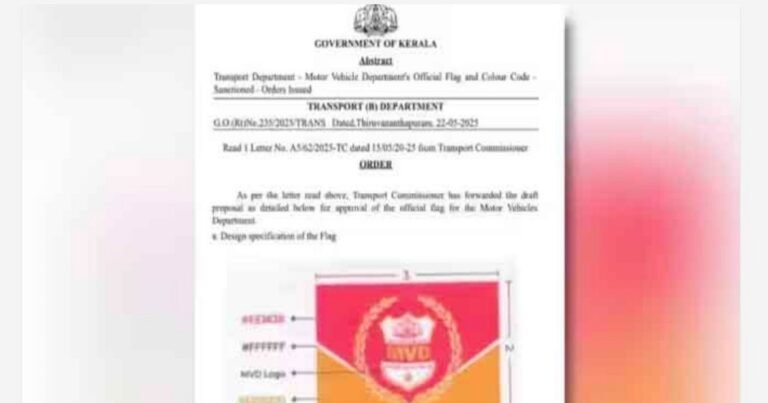 എംവിഡിക്ക് ഔദ്യോഗിക പതാകയായി; ഗതാഗത കമ്മീഷണറുടെ ശുപാർശ സർക്കാർ അംഗീകരിച്ചു