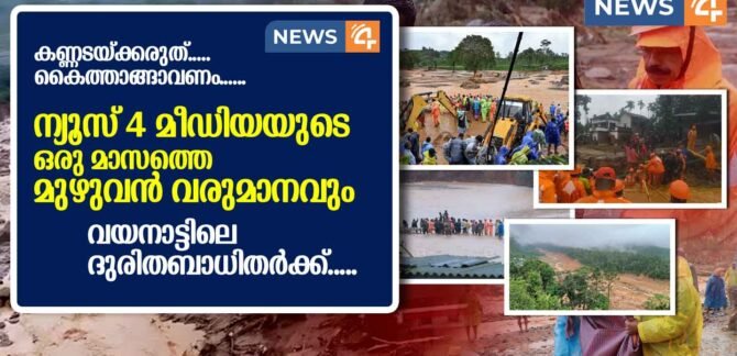 നിറയെ വീടുകളും മരങ്ങളും സ്കൂളും കുട്ടികളുടെ കളി ചിരികളും എല്ലാമുള്ള ഇടമായിരുന്നു ചൂരൽമല ഗ്രാമം. ഒരു രാത്രി ഇരുട്ടിവെളുത്തപ്പോൾ ഒരു പച്ചപ്പുപോലും അവശേഷിക്കാതെ ആ ഗ്രാമം അപ്പാടെ ഇല്ലാതായി. ശേഷിച്ചത് പുതഞ്ഞുകിടക്കുന്ന ചെളിയും അതിൽ പൊലിഞ്ഞ ജീവനുകളെ കണ്ടെത്താൻ പറ്റാത്തതിന്റെ ഭീതിയും ഉയരുന്ന വിലാപങ്ങളുംമാത്രം. (One month income of News 4 Media for Wayanad) മുണ്ടക്കൈ ഭാഗത്തുനിന്ന് ഉരുൾപൊട്ടി ഒഴുകിയെത്തിയതോടെ പുഴ ഗതിമാറുകയായിരുന്നു. കഴിഞ്ഞദിവസം മുൻകരുതലായി ഏതാനും കുടുംബങ്ങളെ മാറ്റിപ്പാർപ്പിച്ചിരുന്നു. ശേഷിക്കുന്ന കുടുംബങ്ങളെല്ലാം ഇവിടെയുണ്ടായിരുന്നു. … Continue reading ന്യൂസ് 4 മീഡിയയുടെ ഒരു മാസത്തെ വരുമാനം വയനാടിന്; മലവെള്ളപാച്ചിൽ തകർത്ത ജീവിതങ്ങളെ കൈ പിടിച്ചുയർത്താം…
