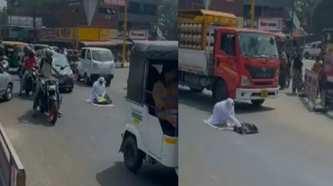 നടുറോഡിൽ പായ വിരിച്ച് നിസ്‌കാരം നടത്തി യുവതി; അതൊരു സാധാരണ നിസ്കാരമായിരുന്നില്ല