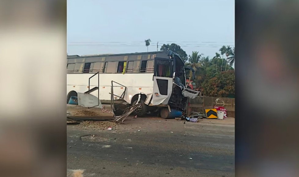 A tourist bus heading to Cheppad Kripasanal met with an accident in Alappuzha after hitting a road divider. No serious injuries were reported. The accident occurred shortly after the bus resumed its journey following a tea break, with police citing driver inattention as the cause. CCTV visuals of the incident have emerged.