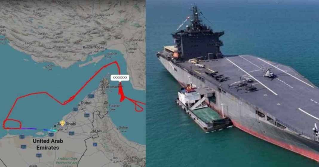 അബുദാബി മേഖലയിൽ നിന്നാരംഭിച്ച് പലതവണ ഹോർമൂസ് കടലിടുക്ക് വരെ എത്തുന്ന പാതയിലൂടെയാണ് വിമാനത്തിന്റെ തുടർച്ചയായ സഞ്ചാരം.