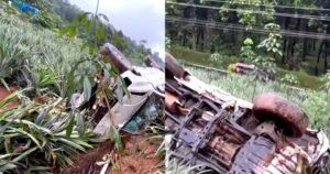 വിദ്യാർഥികൾ സഞ്ചരിച്ച വാഹനം മറിഞ്ഞു അപകടം മുണ്ടക്കയം 35 ാം മൈലിൽ കോളേജ് വിദ്യാർഥികൾ സഞ്ചരിച്ച വാഹനം നിയന്ത്രണം വിട്ട് താഴ്ച്ചയിലേക്ക് മറിഞ്ഞു. വാഹനത്തിന്റെ സാങ്കേതിക തകരാറാണ് അപകട കാരണമെന്ന് സൂചന. കുട്ടിക്കാനത്തെ വിദ്യാഭ്യാസ സ്ഥാപനത്തിലെ കുട്ടികളാണ് മറിഞ്ഞ വാഹനത്തിലുണ്ടായിരുന്നത്. വാഹനത്തിന്റെ പിൻചക്രത്തിന്റെ തകരാർ മൂലം റോഡരികിലുള്ള കൈതത്തോട്ടത്തിലേക്ക് വാഹനം മറിയുകയായിരുന്നു എന്നാണ് സൂചന. പലതവണ മറിഞ്ഞ വാഹനം കൂടുതൽ താഴ്ച്ചയിലേക്ക് പതിക്കാതിരുന്നതിനാൽ വൻ അപകടം ഒഴിവായി. വാഹനത്തിലുണ്ടായിരുന്ന വിദ്യാർഥികളെ നിസാര പരിക്കോടെ അടുത്തുള്ള ആശുപത്രിയിൽ പ്രവേശിപ്പിച്ചു. … Continue reading വിദ്യാർഥികൾ സഞ്ചരിച്ച വാഹനം മറിഞ്ഞു അപകടം