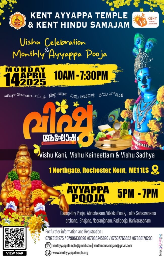 ഇംഗ്ലണ്ടിലെ കെന്റ് അയ്യപ്പ ടെമ്പിളും കെന്റ് ഹിന്ദുസമാജംവും സംയുക്തമായി വിഷു ആഘോഷങ്ങളും, അയ്യപ്പ പൂജയും സംഘടിപ്പിക്കുന്നു.