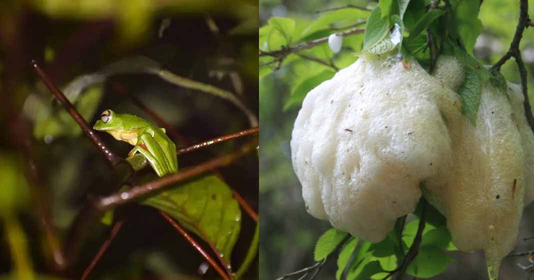 During the monsoon, female frogs construct foam nests on leaves above water bodies to lay eggs. The species lives between 955–1640 meters in regions like the Anamalai and Elam Hills. Its vibrant green skin and zebra-patterned tadpoles make it a biologically fascinating species.