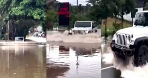 പാലായിൽ മറ്റു വാഹനങ്ങളെ കാഴ്ചക്കാരാക്കി കനത്ത വെള്ളക്കെട്ടിലൂടെ ഥാർ ഓടിച്ച് യുവാവ്; VIDEO