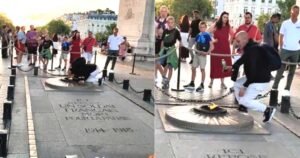 സൈനികന്റെ ശവകുടീരത്തിലെ കെടാവിളക്കിൽ നിന്നും സിഗരറ്റ് കൊളുത്തി യുവാവ്: VIDEO